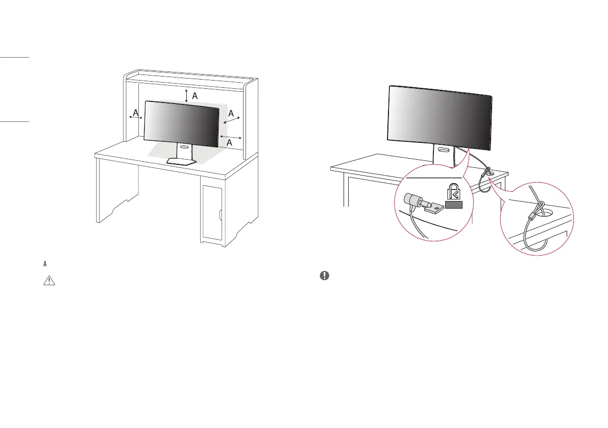 • Til de monitor op en plaats deze rechtop op de tafel. Plaats de monitor ten minste 100mm van de muur om
