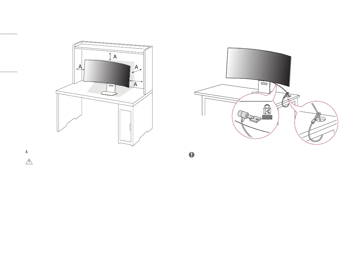 • Lift the monitor and place it on the table in an upright position. Place the monitor at least 100mm
