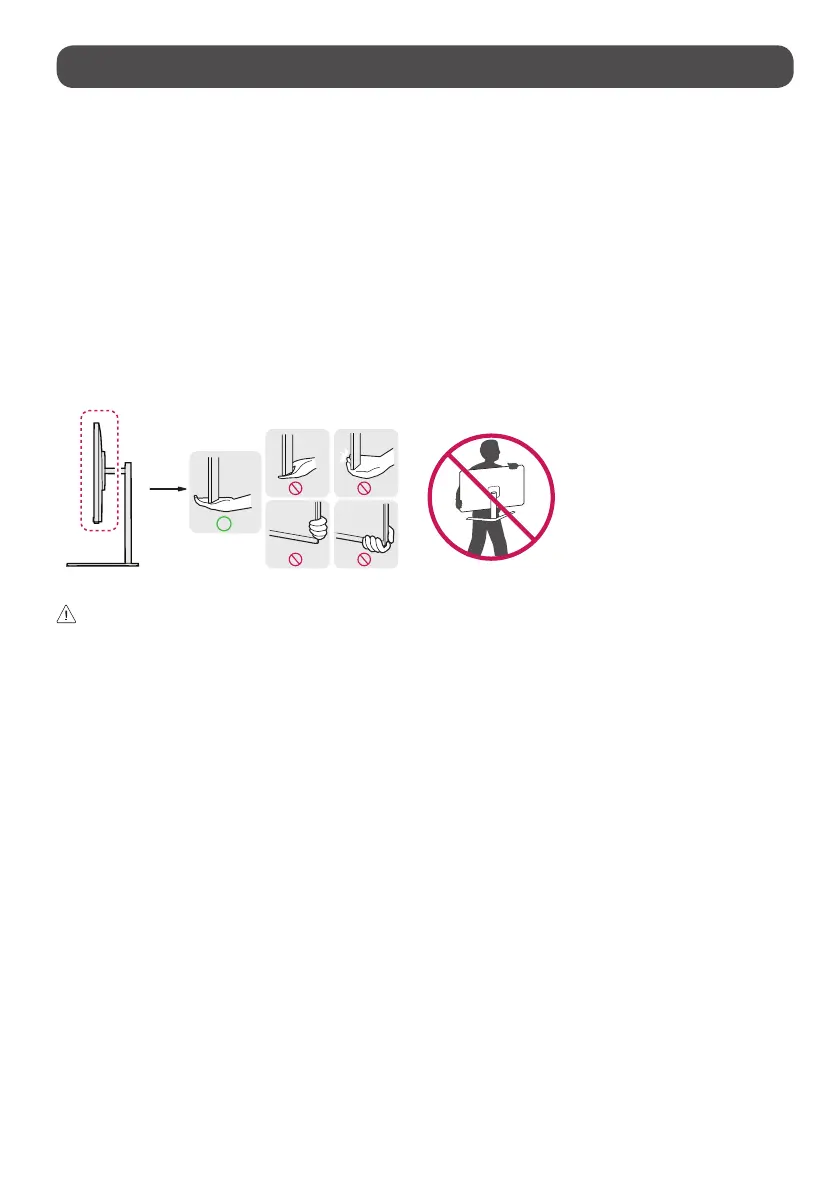 • Wanneer u de monitor vasthoudt, moet het scherm van u af zijn gekeerd om beschadiging te voorkomen.