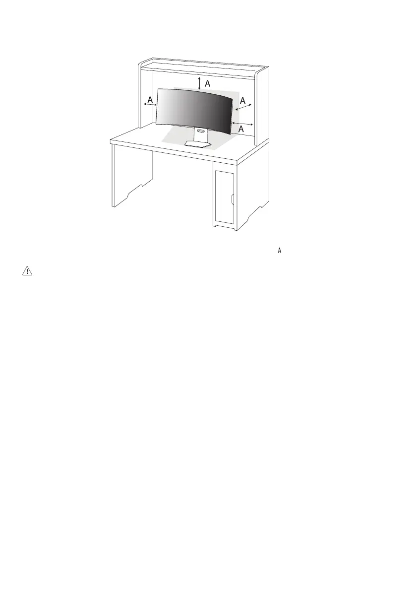 • Til de monitor op en plaats deze rechtop op de tafel. Plaats de monitor ten minste 100mm van de muur om te zorgen voor voldoende ventilatie.