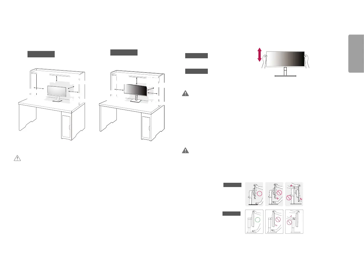• When adjusting the screen height, do not place your hand on the stand body to avoid injury to your fingers.