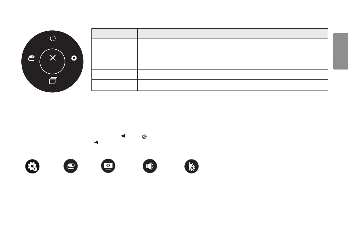 1 To view the OSD menu, press the joystick button at the bottom of the monitor and then enter the Settings.