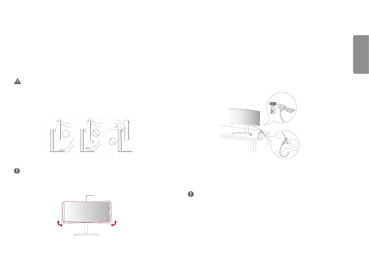 • Be careful not to touch or press the screen area when adjusting the angle of the