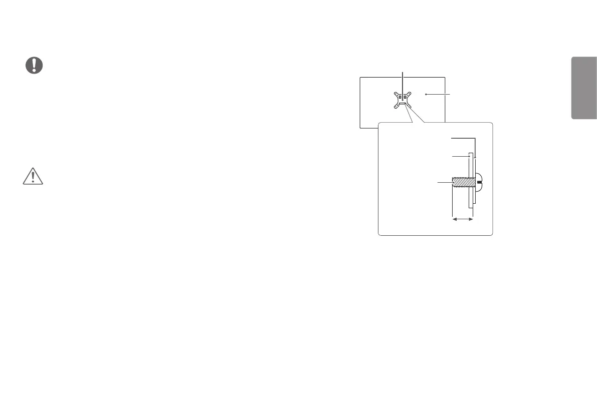 • When measured from the back of the monitor, the length of each installed screw
