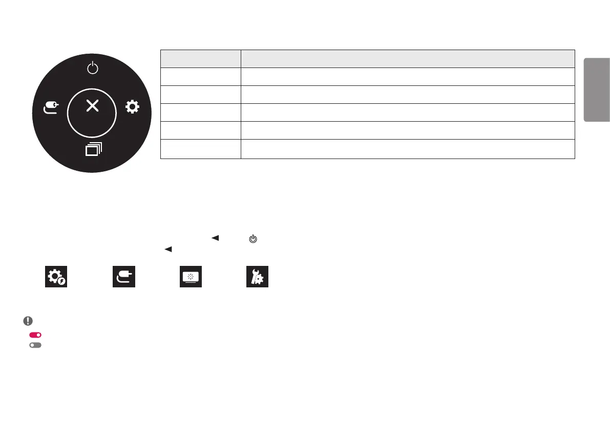 1 To view the OSD menu, press the joystick button on the right back of the monitor and then enter the Settings.