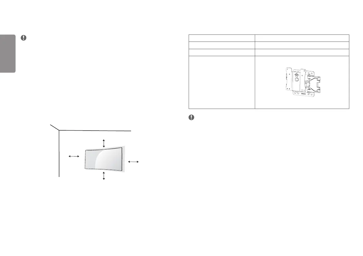 • Be careful not to apply too much force while mounting the wall mount plate as it may cause damage to the