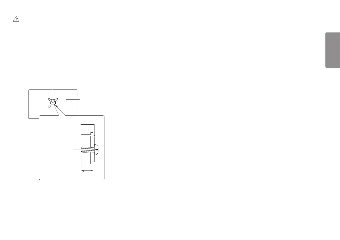 • When measured from the back of the monitor, the length of each installed screw must be 8 mm (0.3 inches)