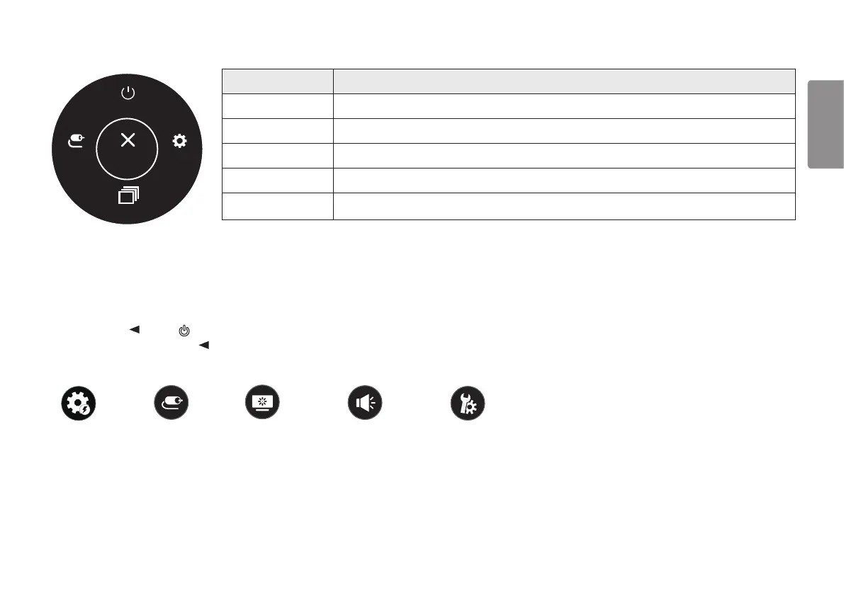 1 Als u het OSD-menu wilt bekijken, drukt u op de joystickknop aan de onderkant van de monitor en opent u de Settings.