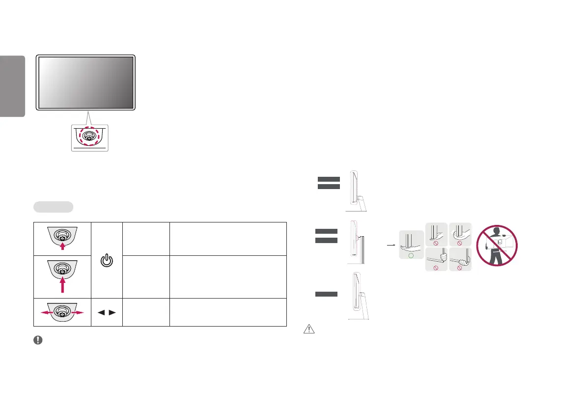 • Als u het monitorpaneel gebruikt zonder de basis van de standaard, kan de joystickknop ervoor zorgen dat de