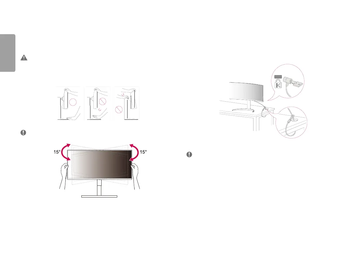 • Be careful not to touch or press the screen area when adjusting the angle of the monitor.