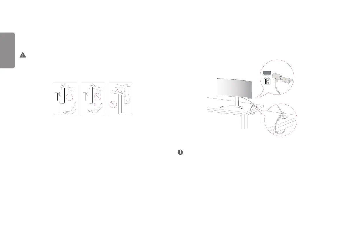 • To avoid injury to the fingers when adjusting the screen, do not hold the lower part of the monitor’s frame as