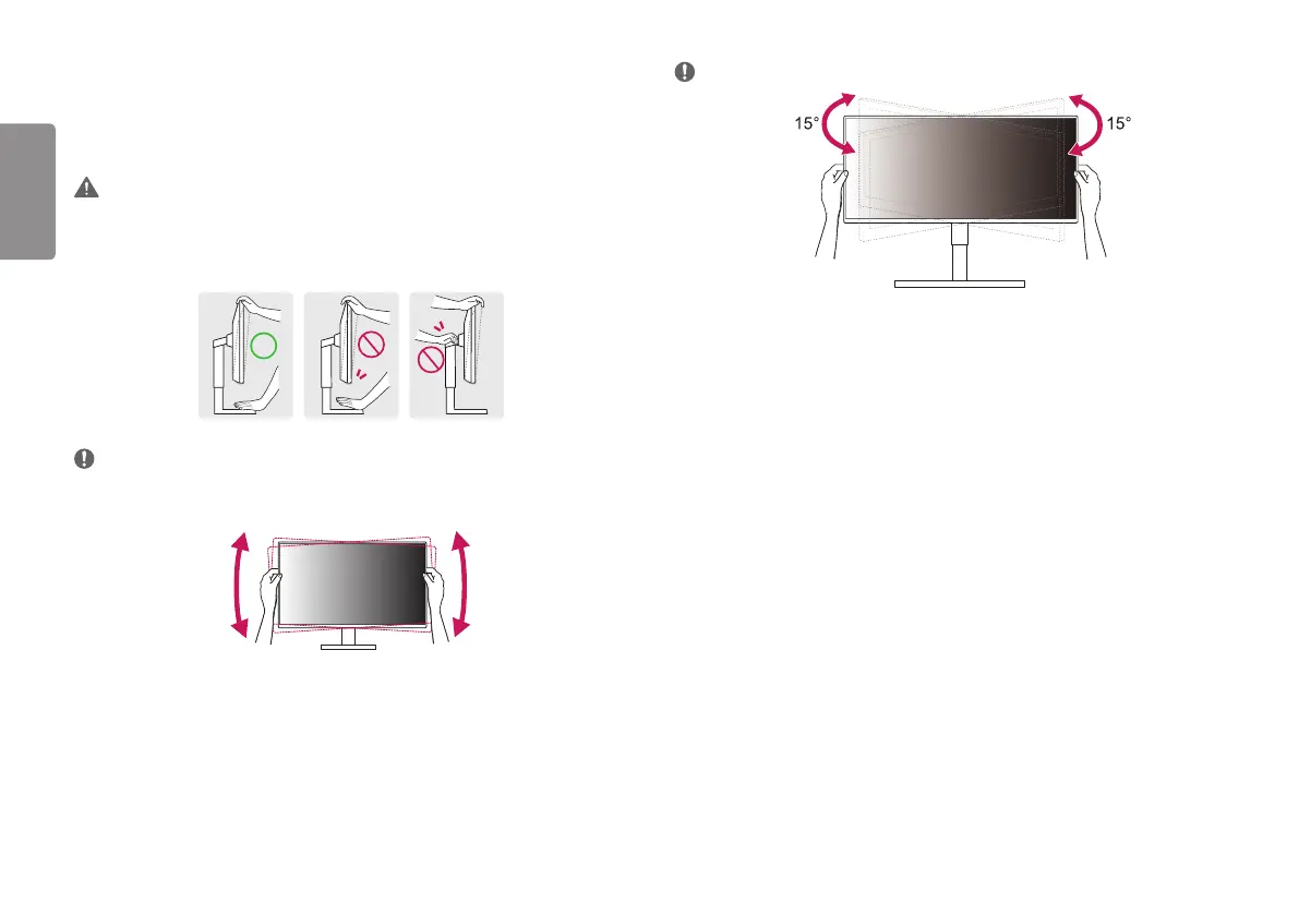 • Raak het scherm niet aan en druk er niet op wanneer u de kijkhoek van de monitor aanpast.