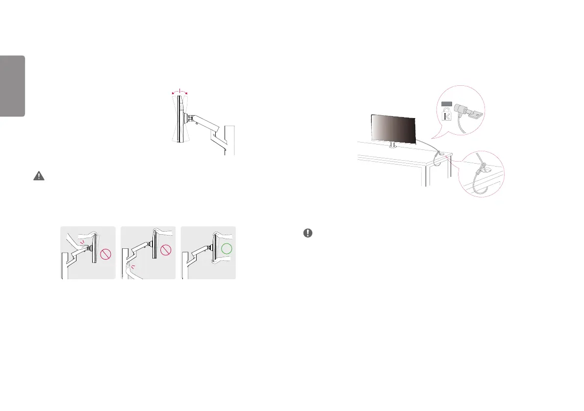 • Be careful not to touch or press the screen area when adjusting the angle of the monitor.