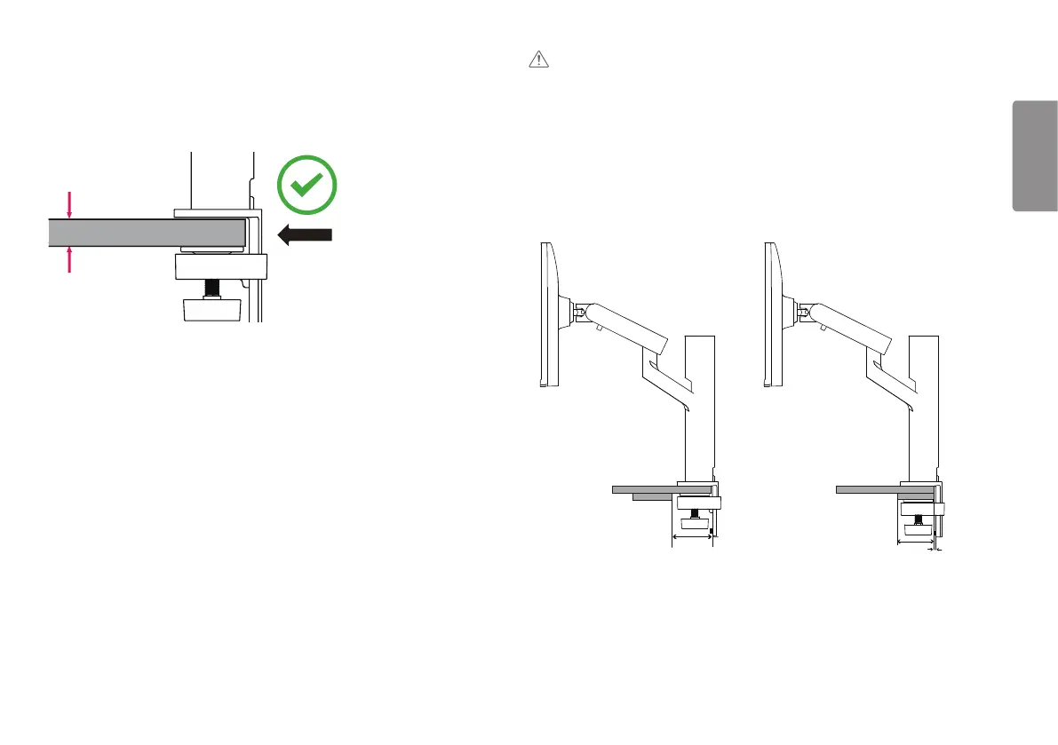 • Make sure the table is solid and stable enough to fully support installation of the monitor. Tables made of