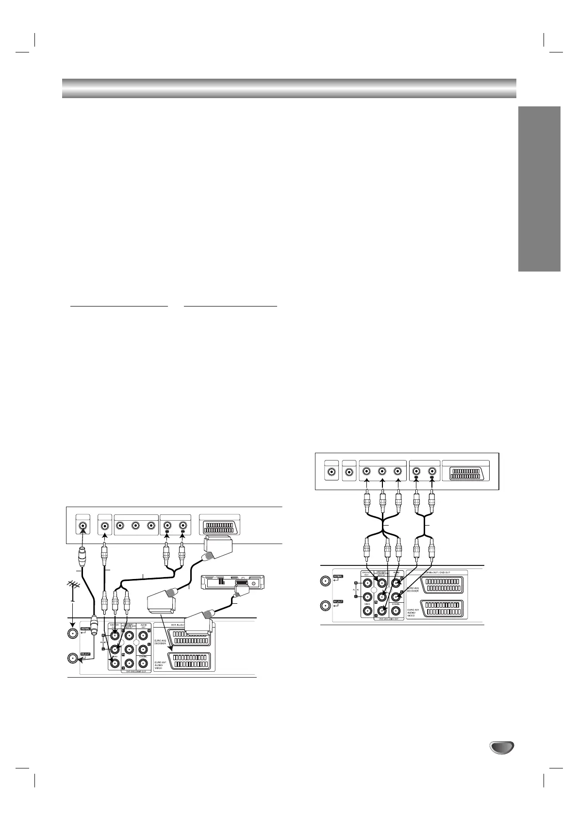 1. Connect the VIDEO (DVD/VCR OUT) jacks on the