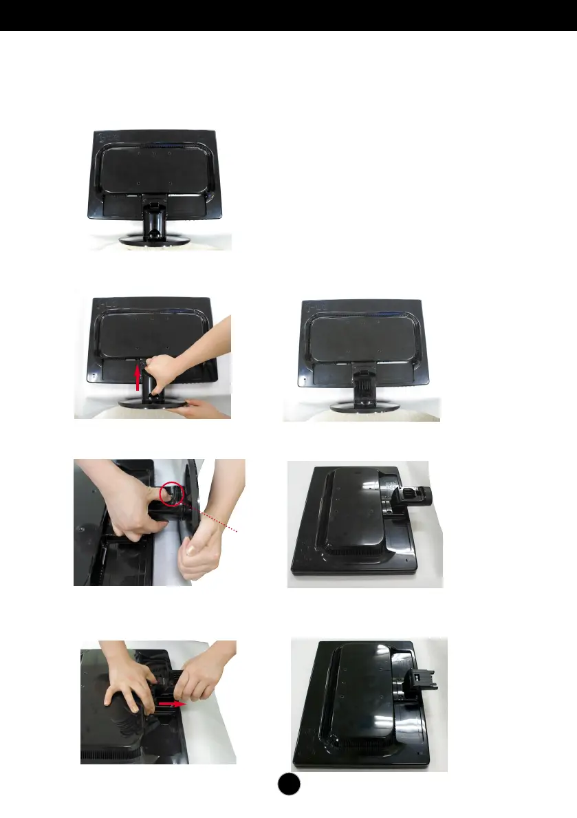3. Press the hook, take off the stand base from stand body.