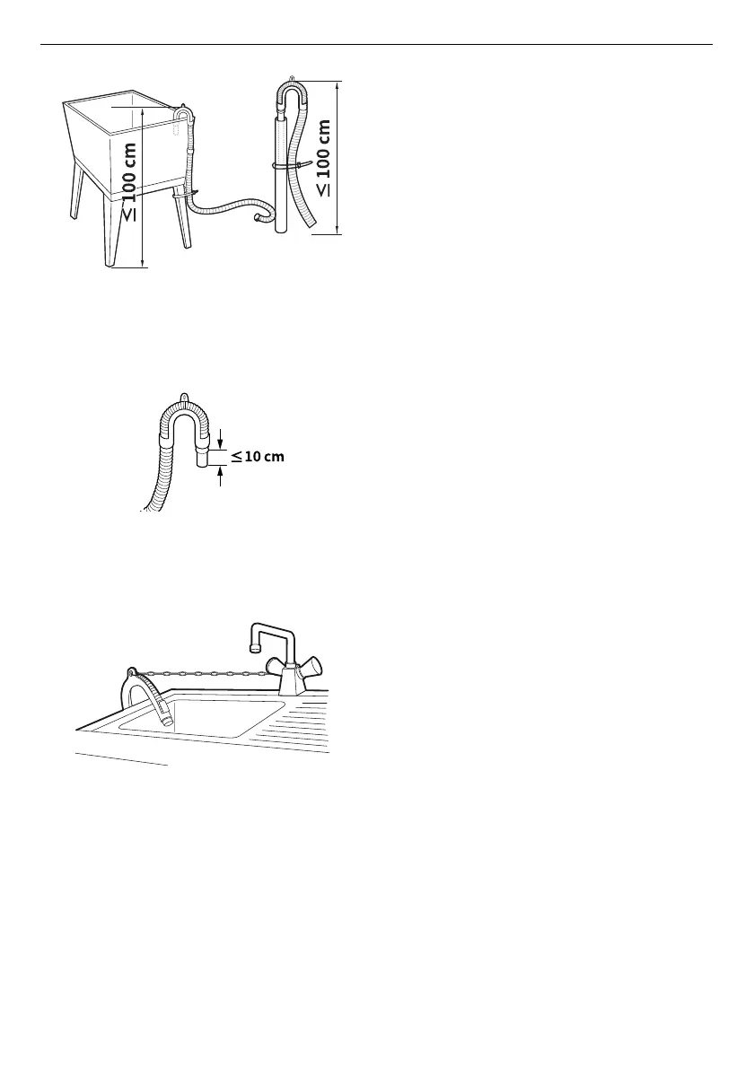 • Zorg ervoor dat de afvoerslang niet meer dan