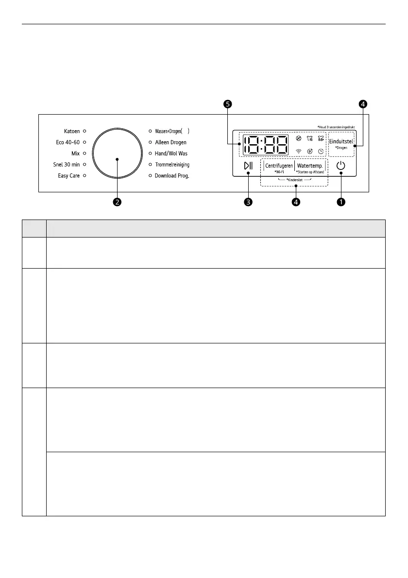 • Druk op deze knop om de wasmachine aan of uit te schakelen.