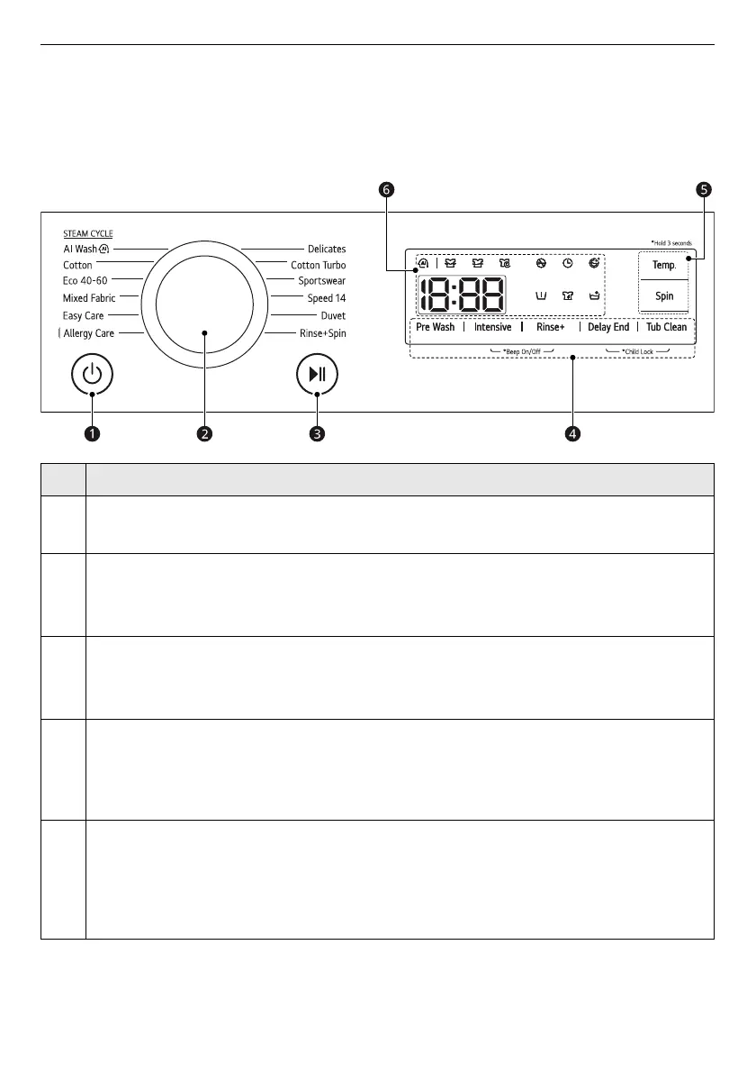 Use these buttons to adjust the water temperature or spin speed settings for the selected