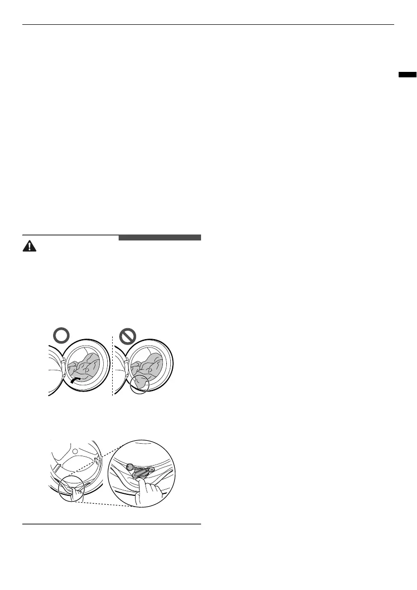 • Before closing the door, ensure that all clothes