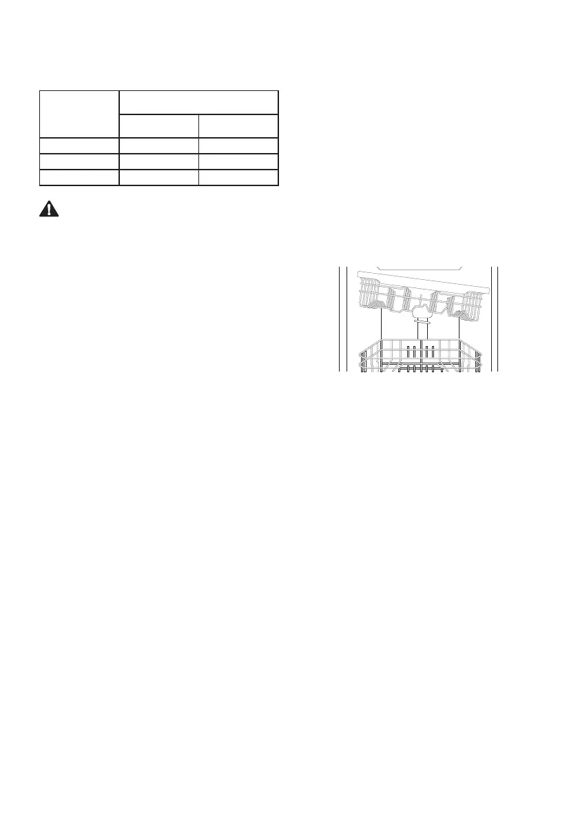 • When the upper rack is in the lower position,