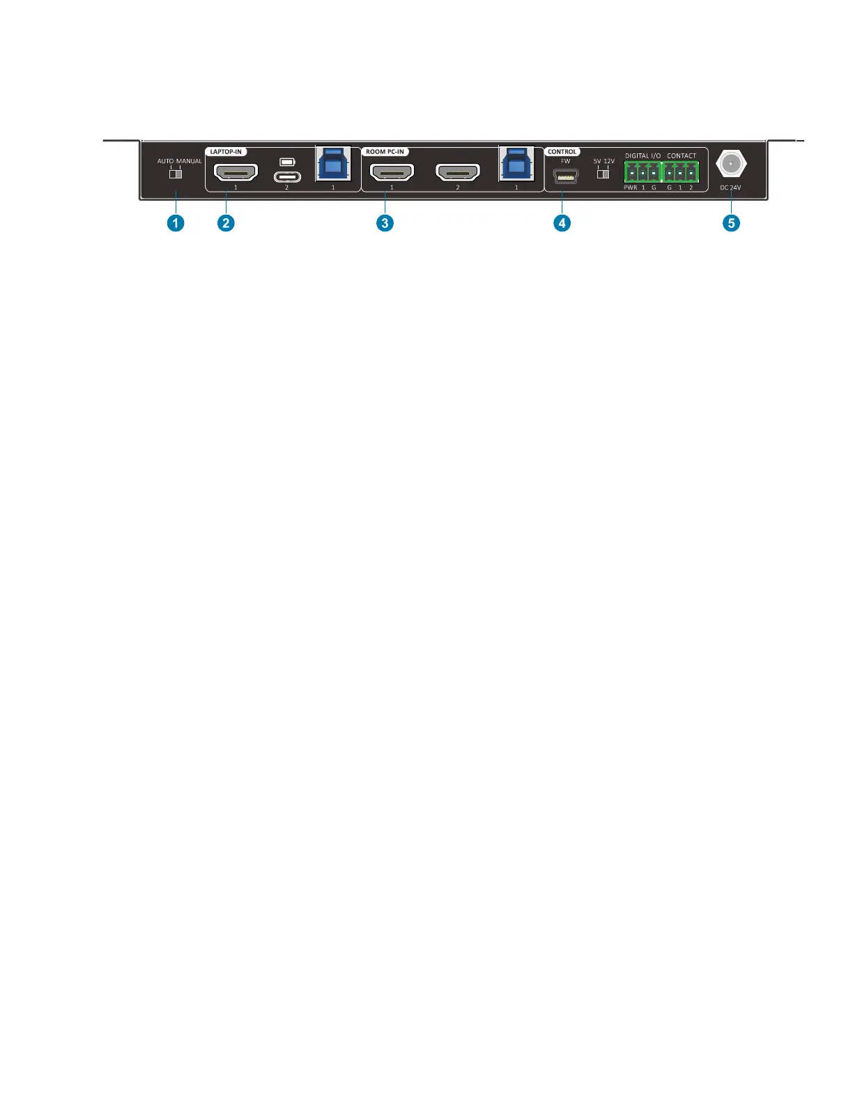 Female HDMI port: Connect a dedicated room computer for dedicated room systems.