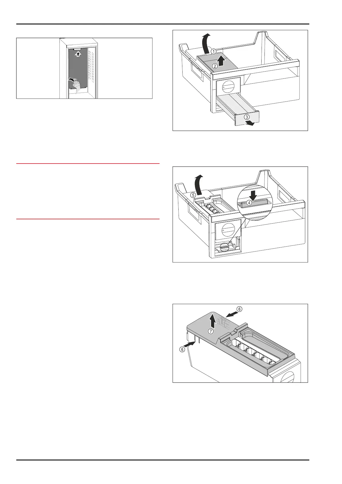 ► Remove the ice cube drawer Fig. 142(3) to the front.