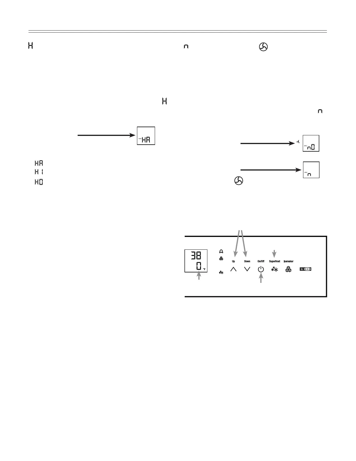 Freezer compartment Up/Down icons