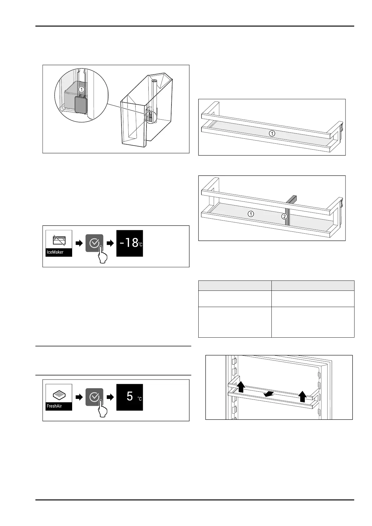Door rack (see Fig. 104) Butter, cheese, tinned food,