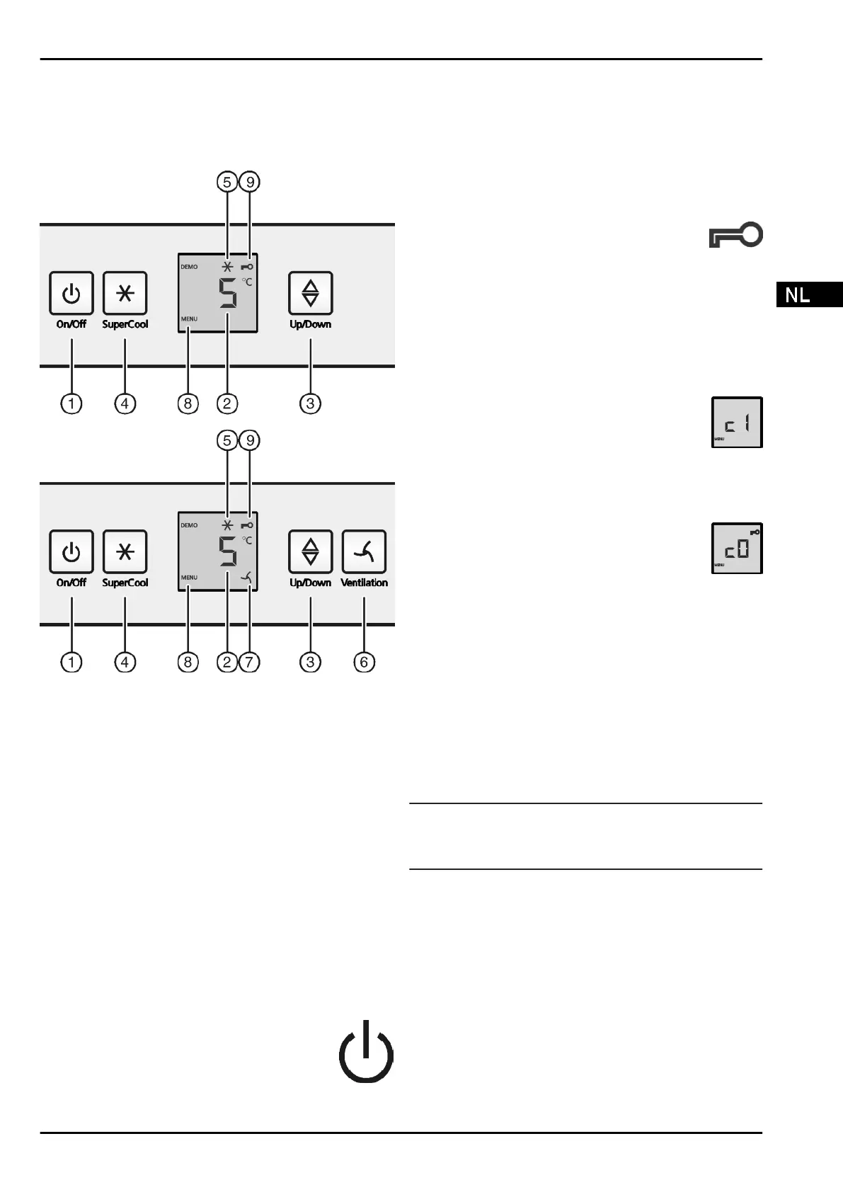 (2) Temperatuurdisplay (7) Symbool Ventilatie*