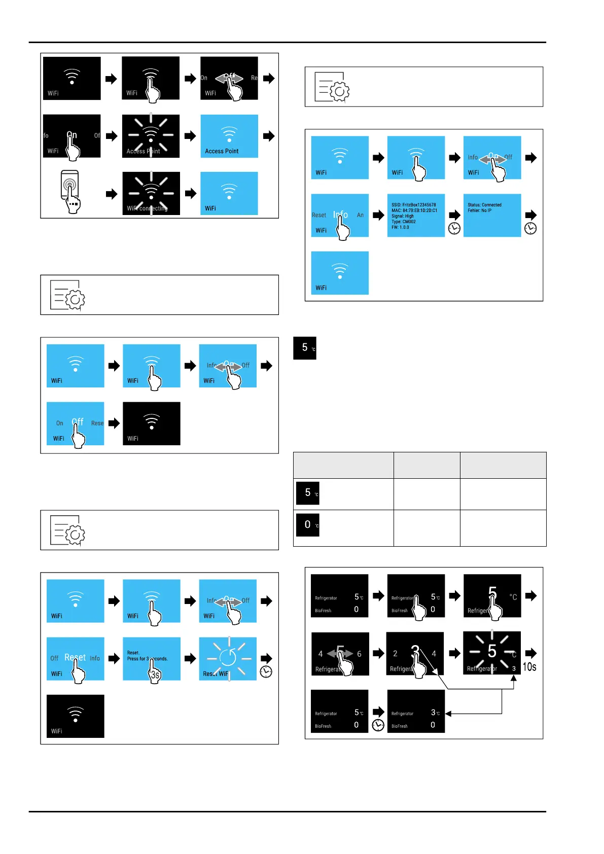 Setting the temperature in the fridge section