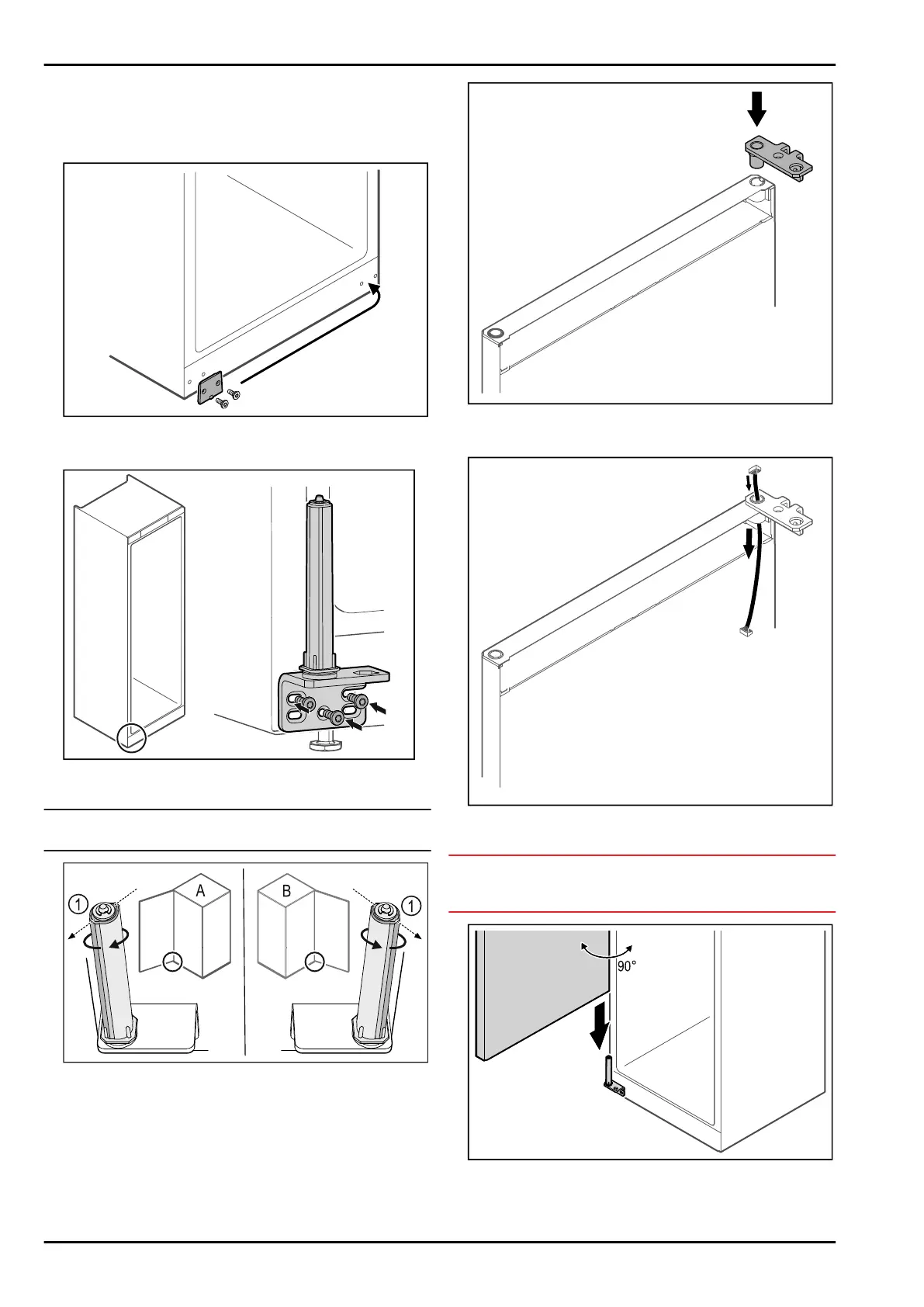 在打开 90°的状态下将冰箱门小心放在关门系统上。