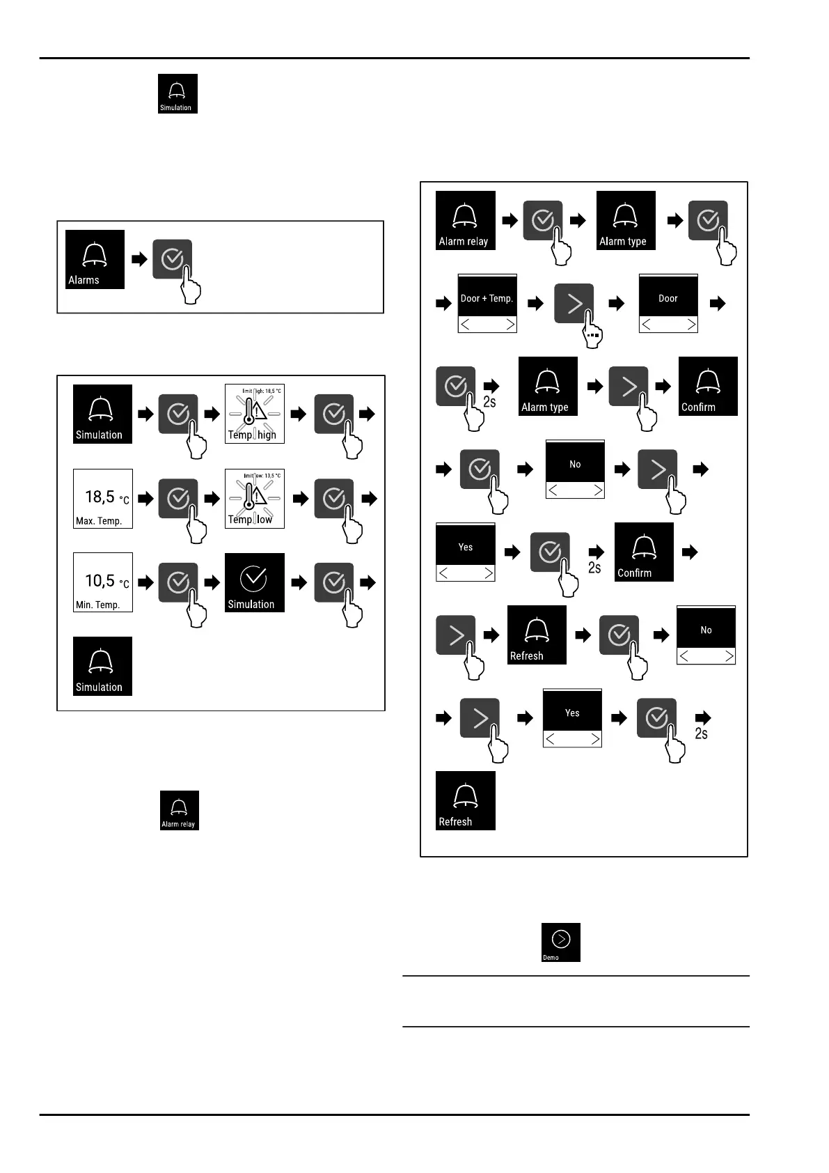 否:将会在冰箱上确认警报;在外部设备上,警报保持激