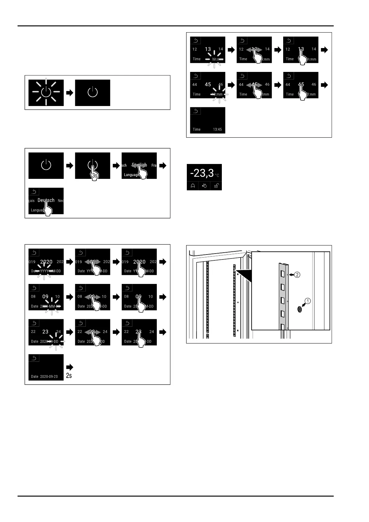 如果冰箱以出厂设置交付,则必须在调试期间首先设置屏幕语