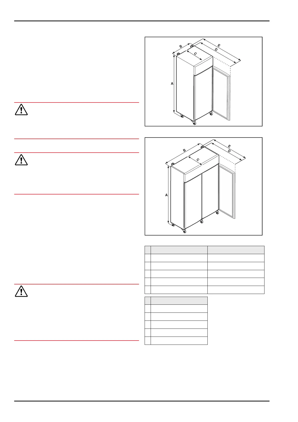 A=包含支脚(最小值)/滚轮在内的冰箱高度