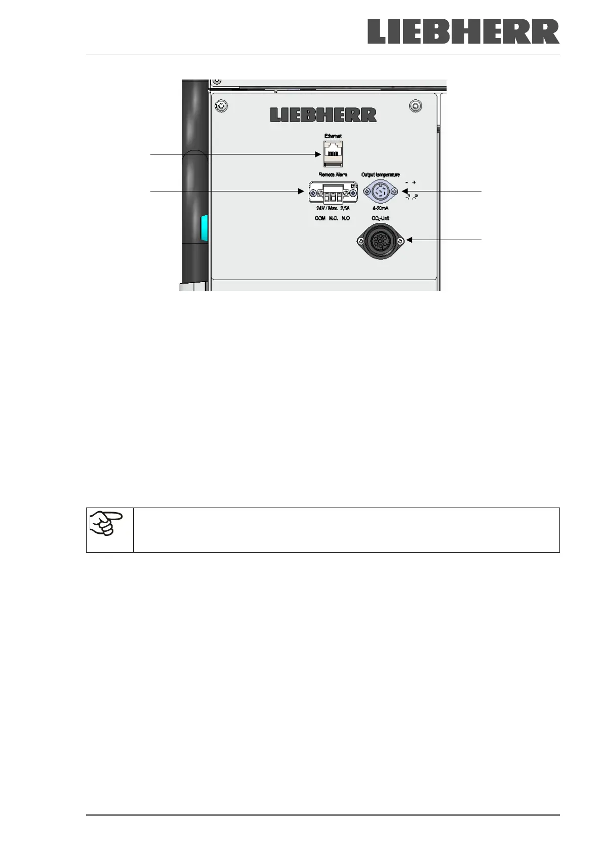 Afbeelding 10: Aansluitpaneel (I) aan de achterkant van het apparaat, met opties