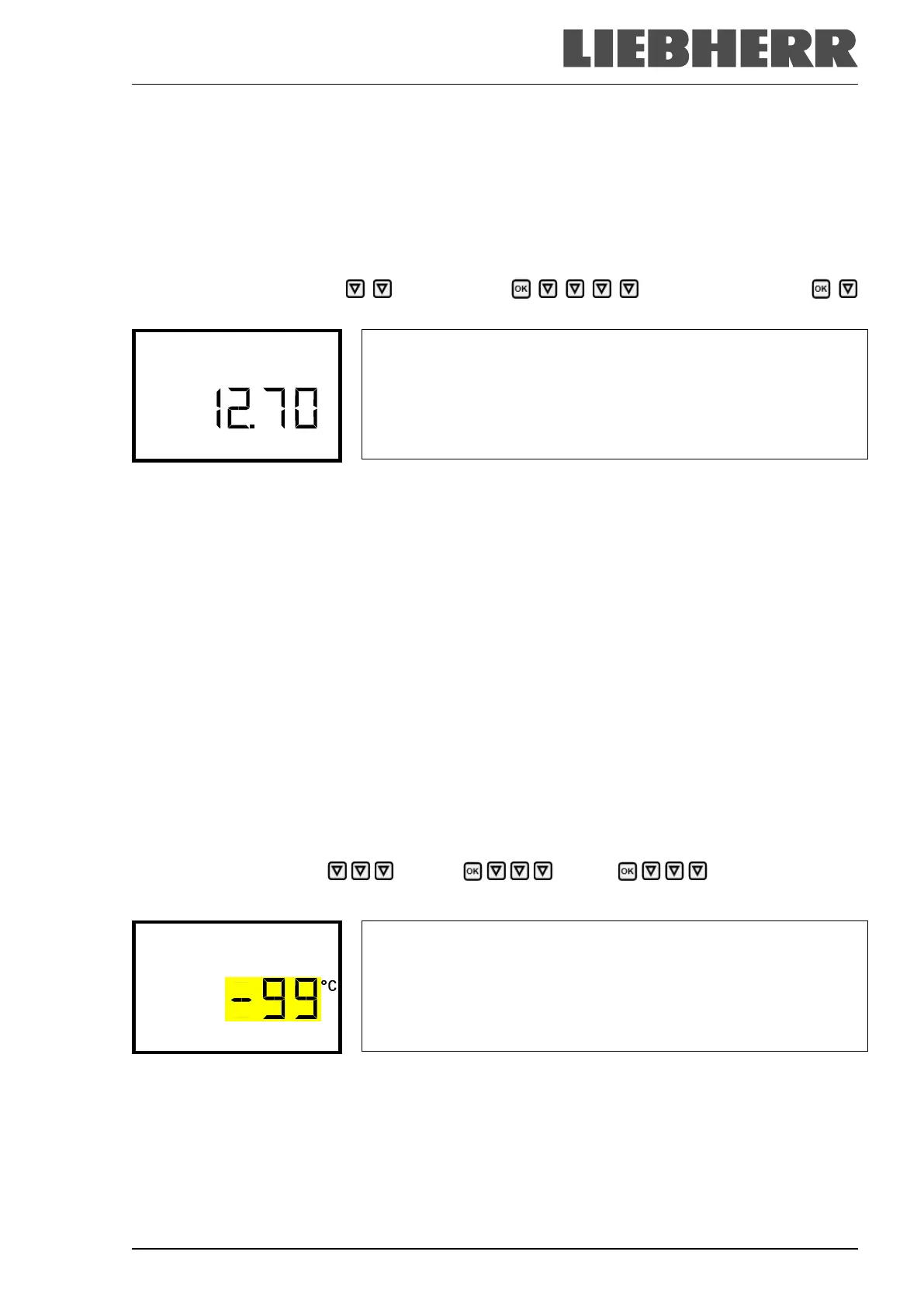 pijltjestoetsen. Invoerbereik: +20 °C tot -99 °C. Fabrieksinstelling is