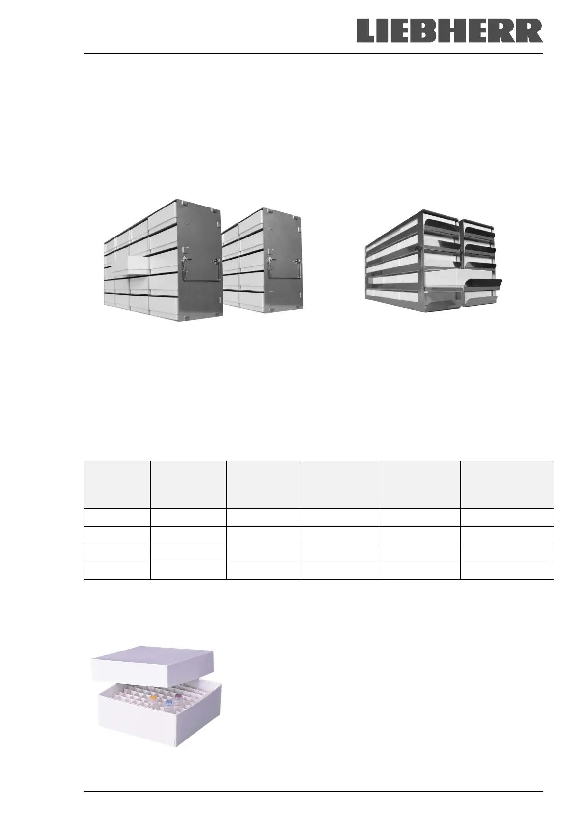 • 330 mm hoogte voor zes standaard cryoboxen (50 mm / 2 inch) boven elkaar