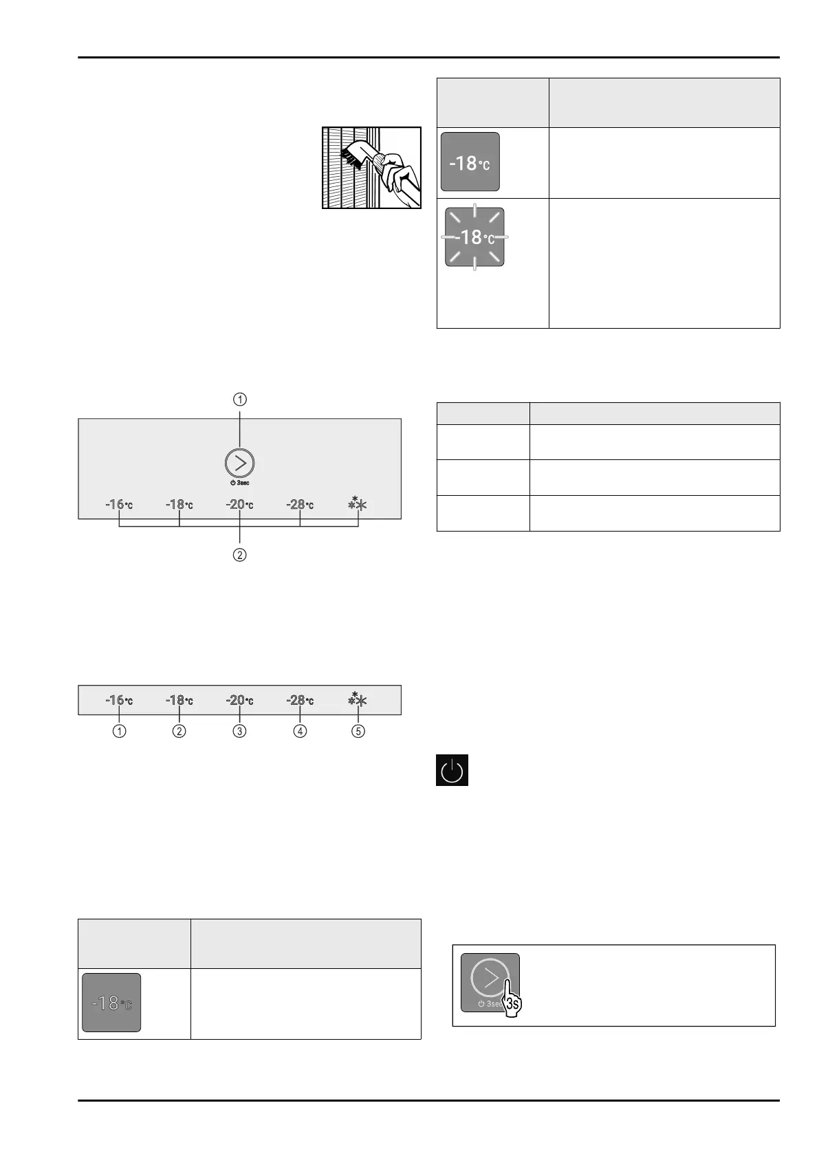 The LEDs indicate temperature settings (see 3.2.1 Main