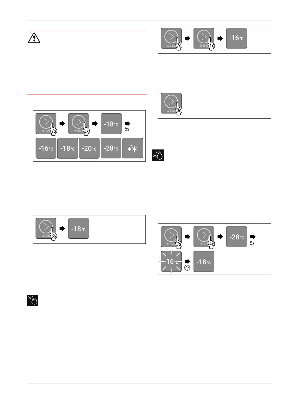 the Cancelling defrosting cycle function are disabled