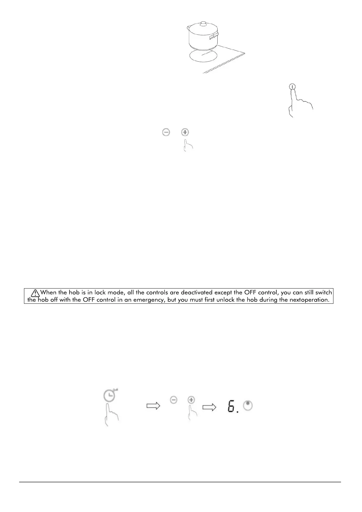 Depending on which heating zone the pan is in, press the "+" or "-" buttons, starting with "9".