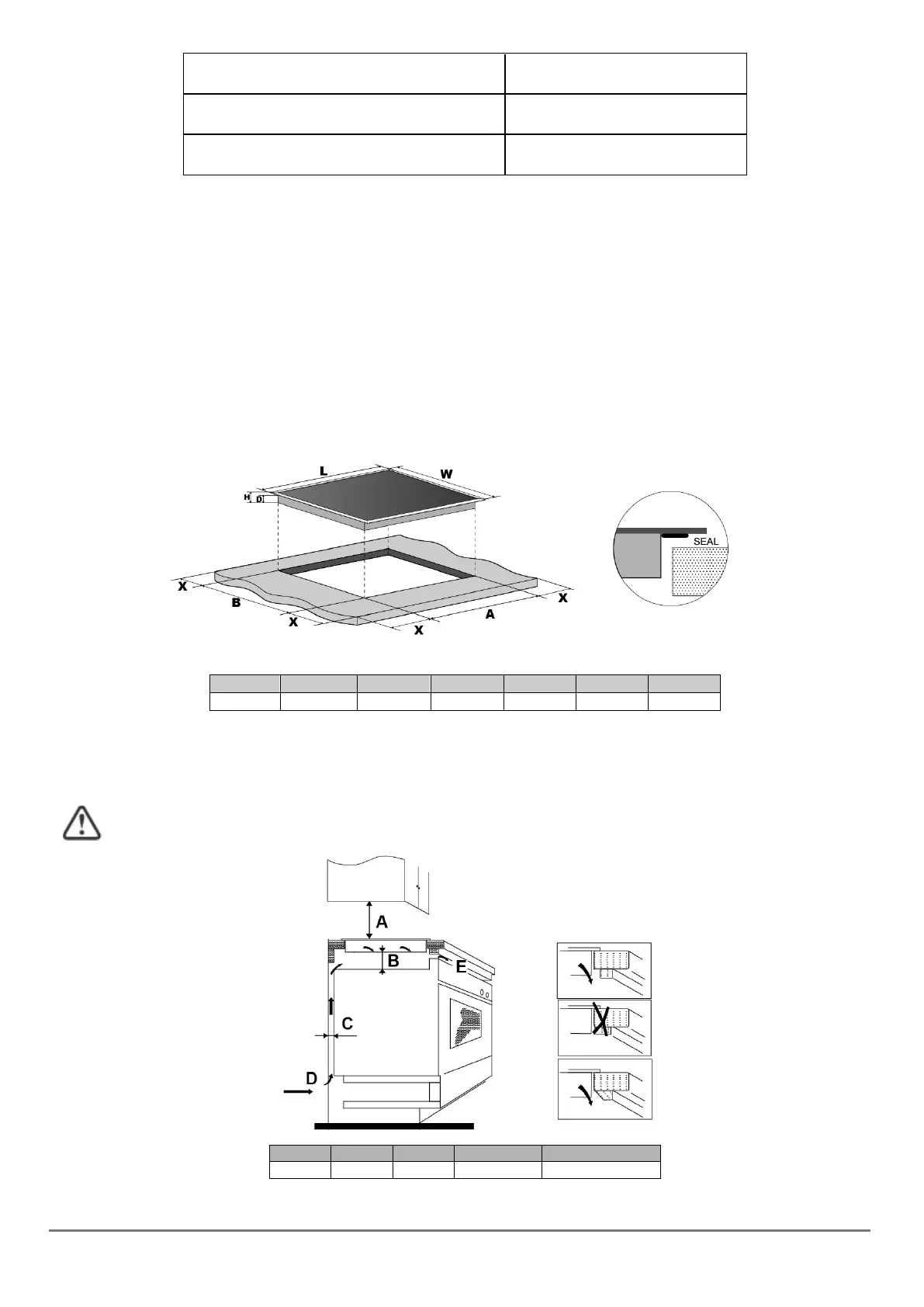 Note : La distance de sécurité entre la plaque de cuisson et l'armoire située au-dessus de la plaque de