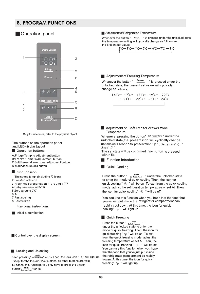 and freezer compartments.The refrigerator room is set to 5 °C,