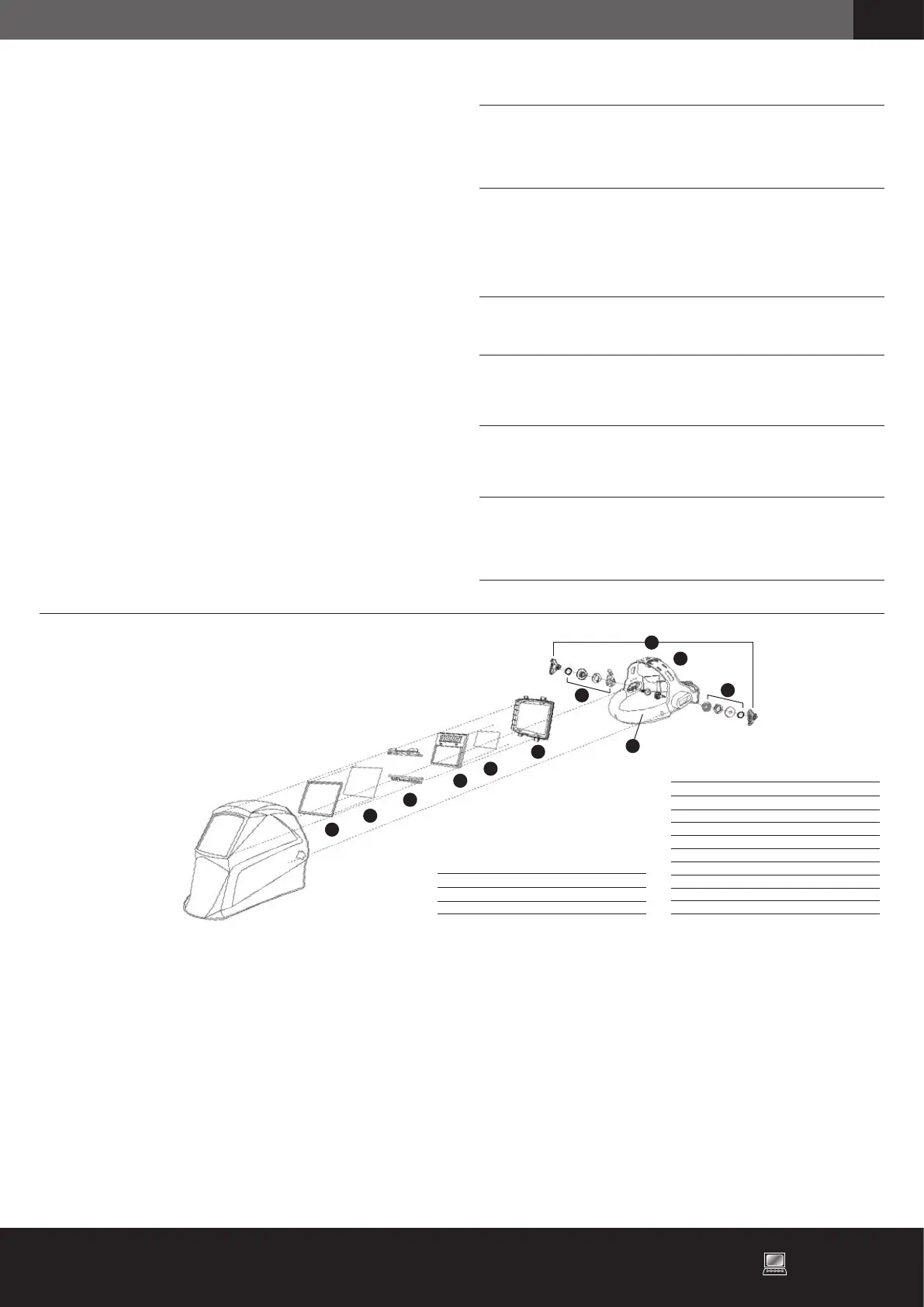 Teile des automatischen Verdunklungsfi lters Das Schweißen sofort einstellen: nachdem der