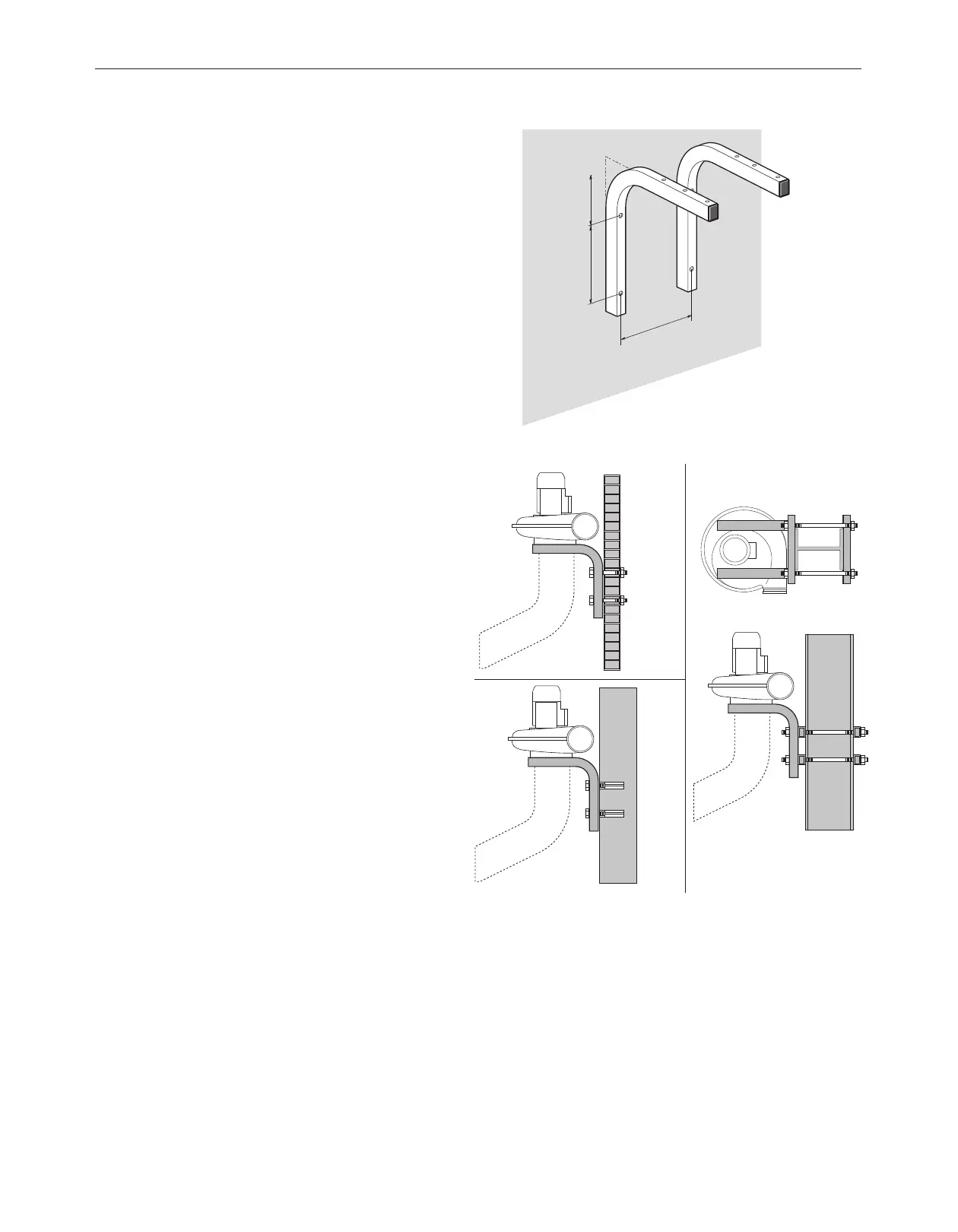 B. Mounting on a thick wall using four cotter bolts 3/8 in. (M10