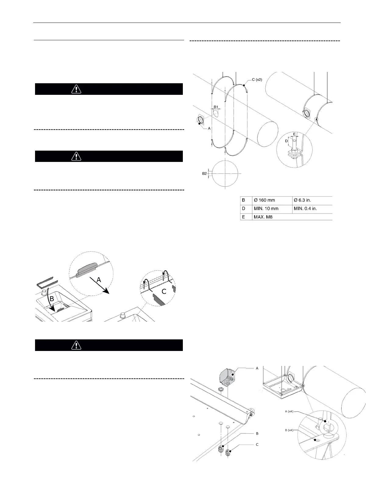 2. Install the duct support material (C). Take the size of the bolts (D &