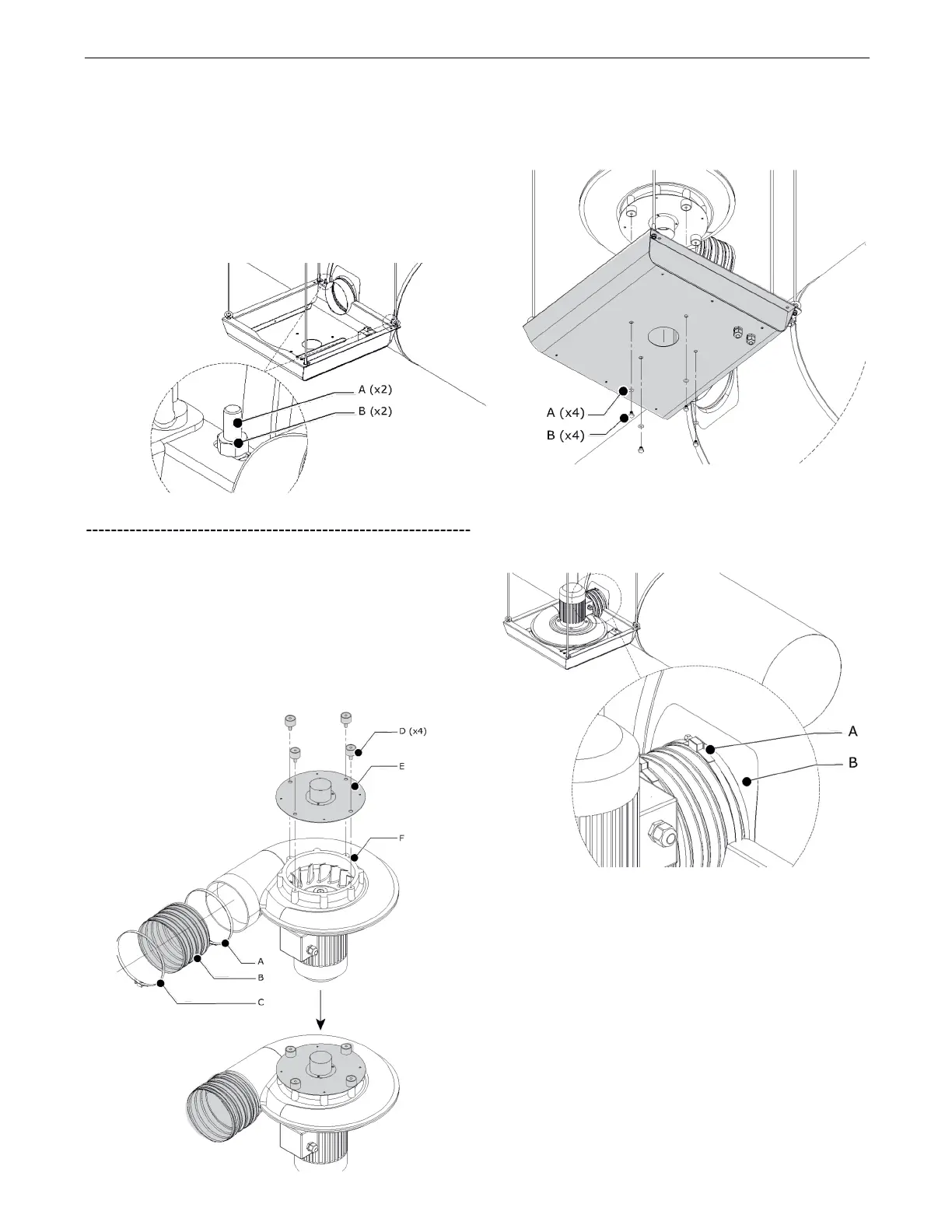 4. Using the supplied bolts M8 (B) with washers (A), fasten the fan