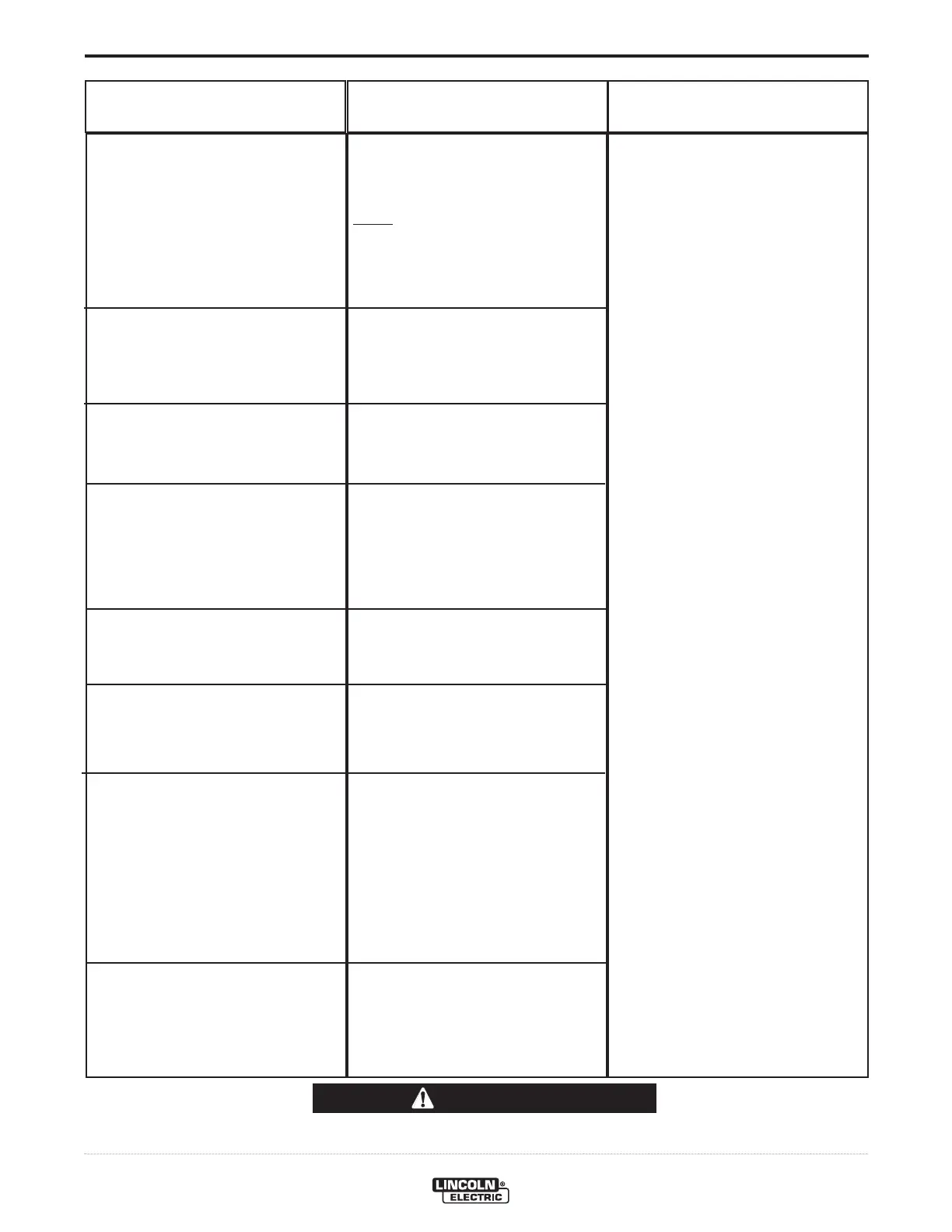 Local Lincoln Authorized Field Service Facility for technical troubleshooting assistance before you proceed.