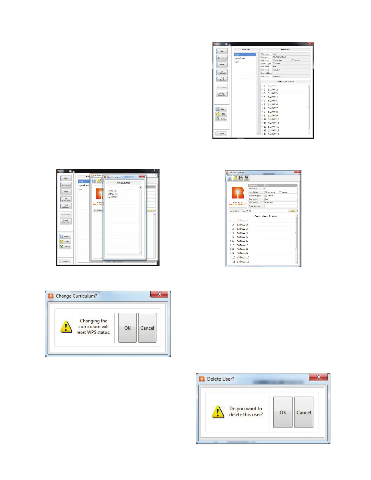 Name, User Rights, Password and Curriculum, if necessary.