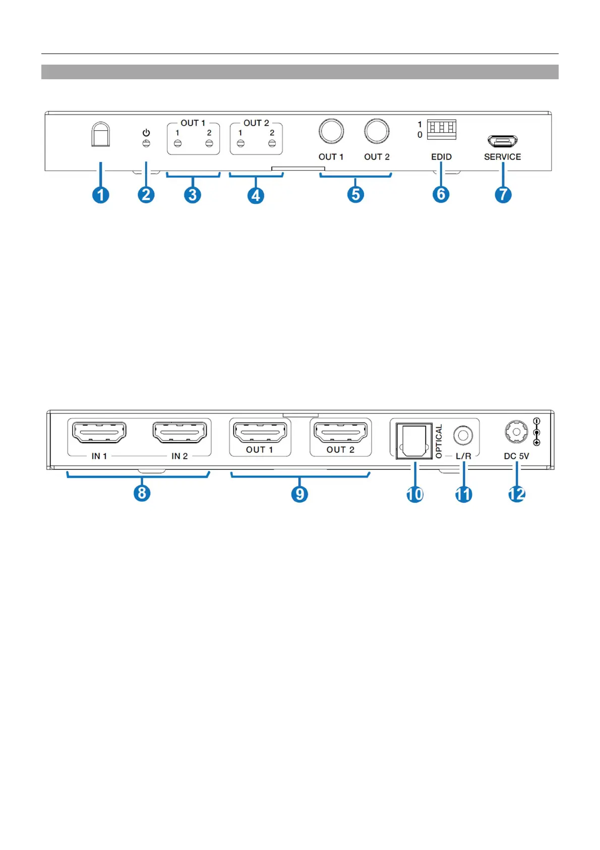 6. EDID DIP Switch – Utilisez le sélecteur DIP pour régler l'EDID.